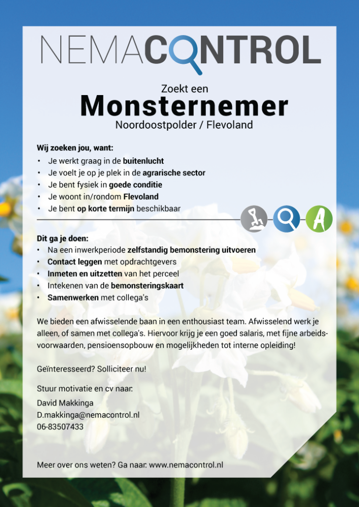 Vacature: MONSTERNEMER admin2026-03-10T12:11:45+00:00 Gerelateerde berichten Uienvlieg signalering Gallery Uienvlieg signalering Themadag aardappelen Gallery Themadag aardappelen Pootaardappeldag Delphy Gallery Pootaardappeldag Delphy Terugblik uienvliegseizoen 2025 Gallery Terugblik uienvliegseizoen 2025 Nematoden onder controle Gallery Nematoden onder controle